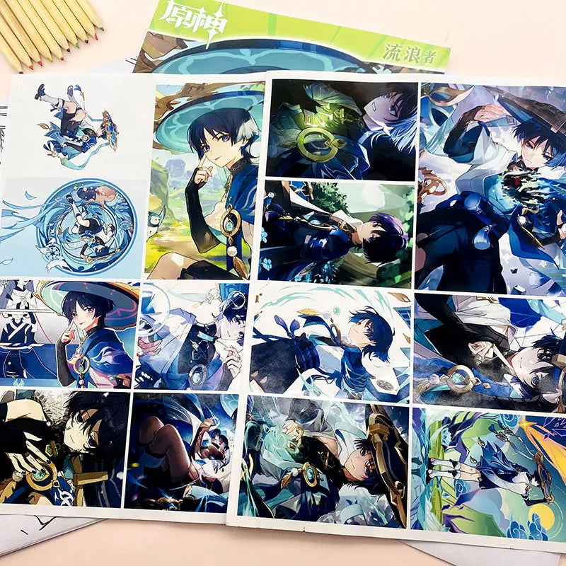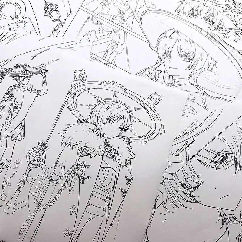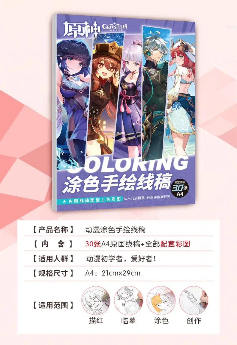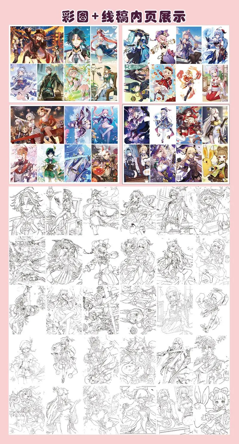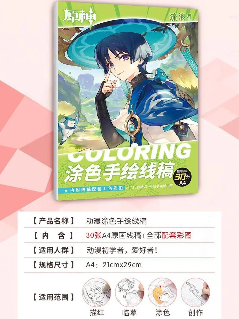 Genshin Book Freehand sketches colouring books for kids Beginners can use colored pencil/markers/acrylic pens painting book